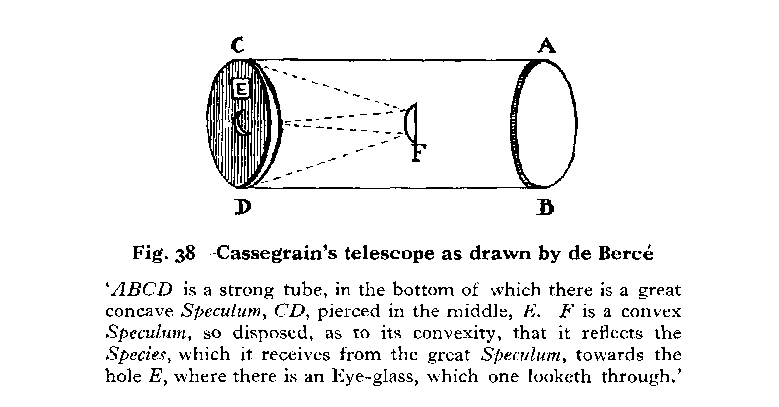 Qui plus est, peu après la publication en 1672 dans le Journal des Sçavants d’une présentation louangeuse du télescope de Newton par Huygens, paraît dans le même journal la description d’un troisième télescope à miroir, dû celui-là à Cassegrain, obscur professeur au collège royal de Chartres.