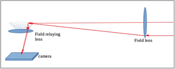 Figure 2.C A beam-combining pseudo-conical mirror with flat facets combines all beams into a densified pupil. And a lens co-focuses them on the camera.